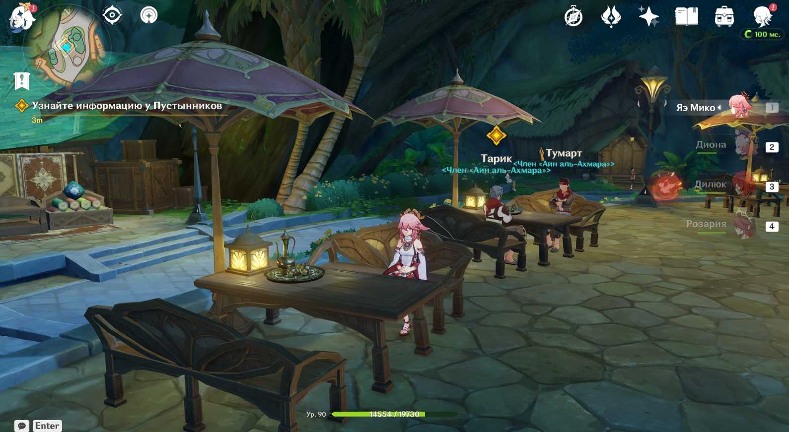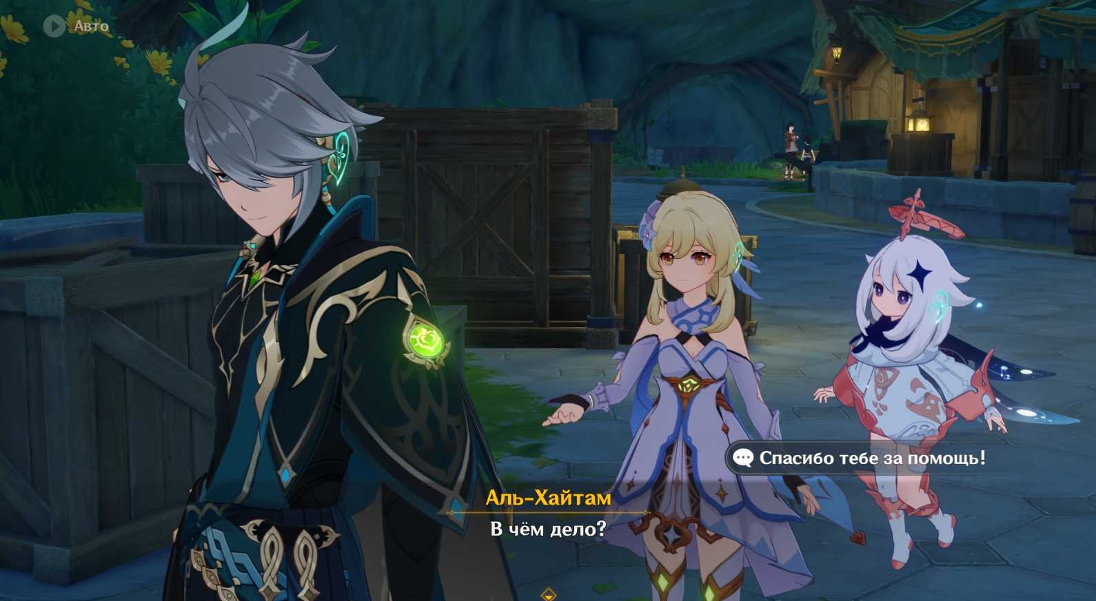 В ходе кат-сцены к нам присоединится Аль-Хайтам. Он расскажет, что Пустынники нас надурили, и прикажет им вернуть нам мору. После Аль-Хайтам уйдет. Нам нужно догнать его и поговорить с ним еще. В ходе разговора наш новый знакомый попросит уйти в более тихое место, где никто не подслушает.