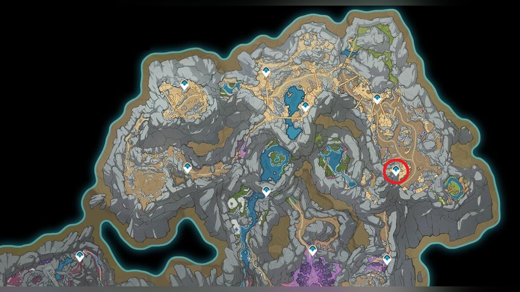 Переместитесь к точке быстрого путешествия, находящейся возле текста «Южные небесные врата» на карте. Вскарабкайтесь на утес на севере для обнаружения строения.