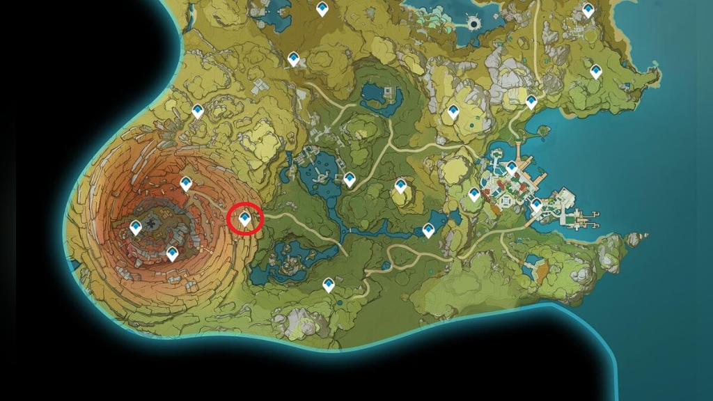 Также важно уточнить, что сама пещера находится в скале и привлекает Путешественников красноватым сиянием. Также на другом конце скалы персонажей ожидает роскошный сундук, как награда, за решение головоломки. В качестве приятного бонуса пользователи получат быструю точку доступа, ведь в подземелье можно будет телепортироваться из любого конца Тейвата.