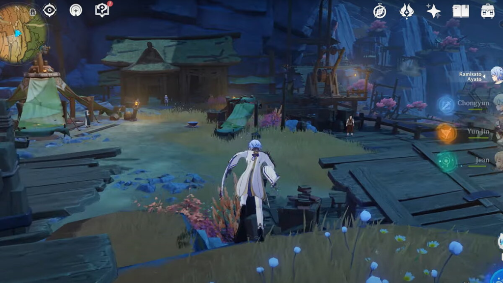 - Отправляйтесь к бассейну Лухуа в регионе Ли Юэ и зажгите костер пиро-персонажем.