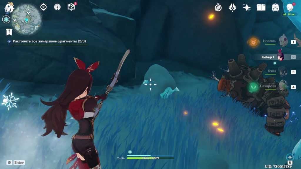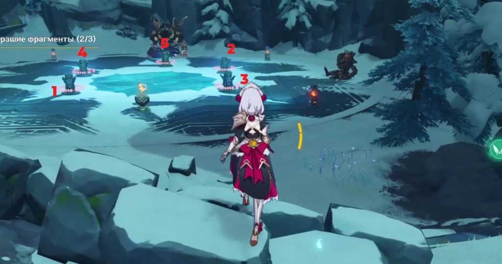 В горах Геншин Импакт: прохождение квеста, задание, растопите все замерзшие предметы