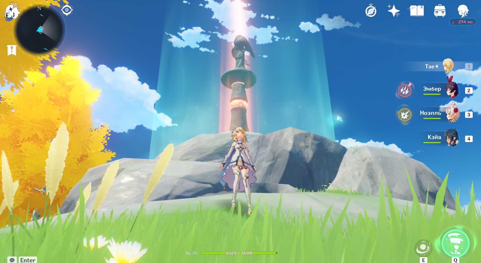 Как победить глаз бури? Если у вас есть Эмбер, используйте ее обычные и заряженные атаки, а когда глаз бури оказывается на земле, бейте его с помощью обычных атак Эфира и элементальных — других персонажей. Если у вас есть водный персонаж, используйте его и Кэйю, чтобы заморозить противника. И не забывайте уворачиваться от его атак и лечиться. После победы статуя станет доступна. Останется только ее активировать.