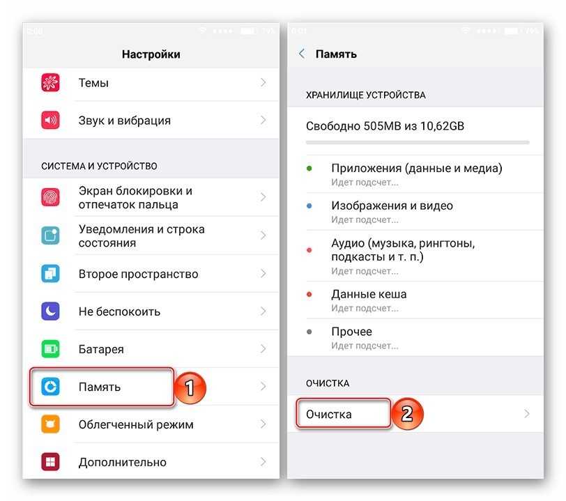 Самый простой способ освободить память — очистка кэша. Перейдите в Настройки — Память — Данные кэша и нажмите Очистить кэш.