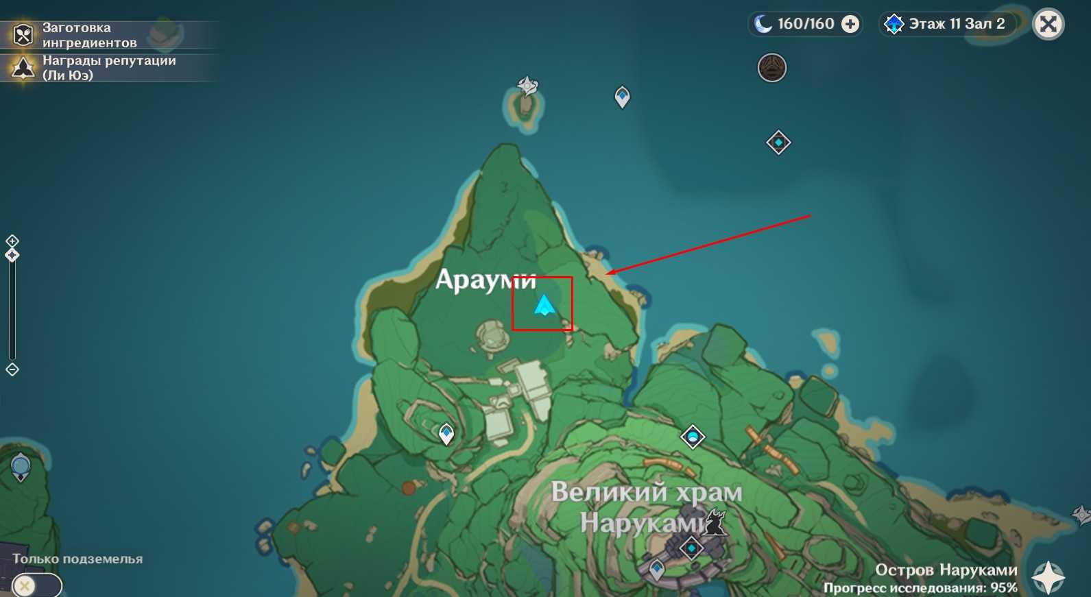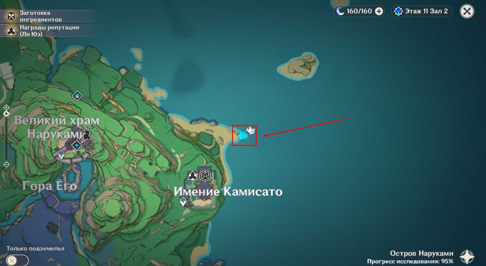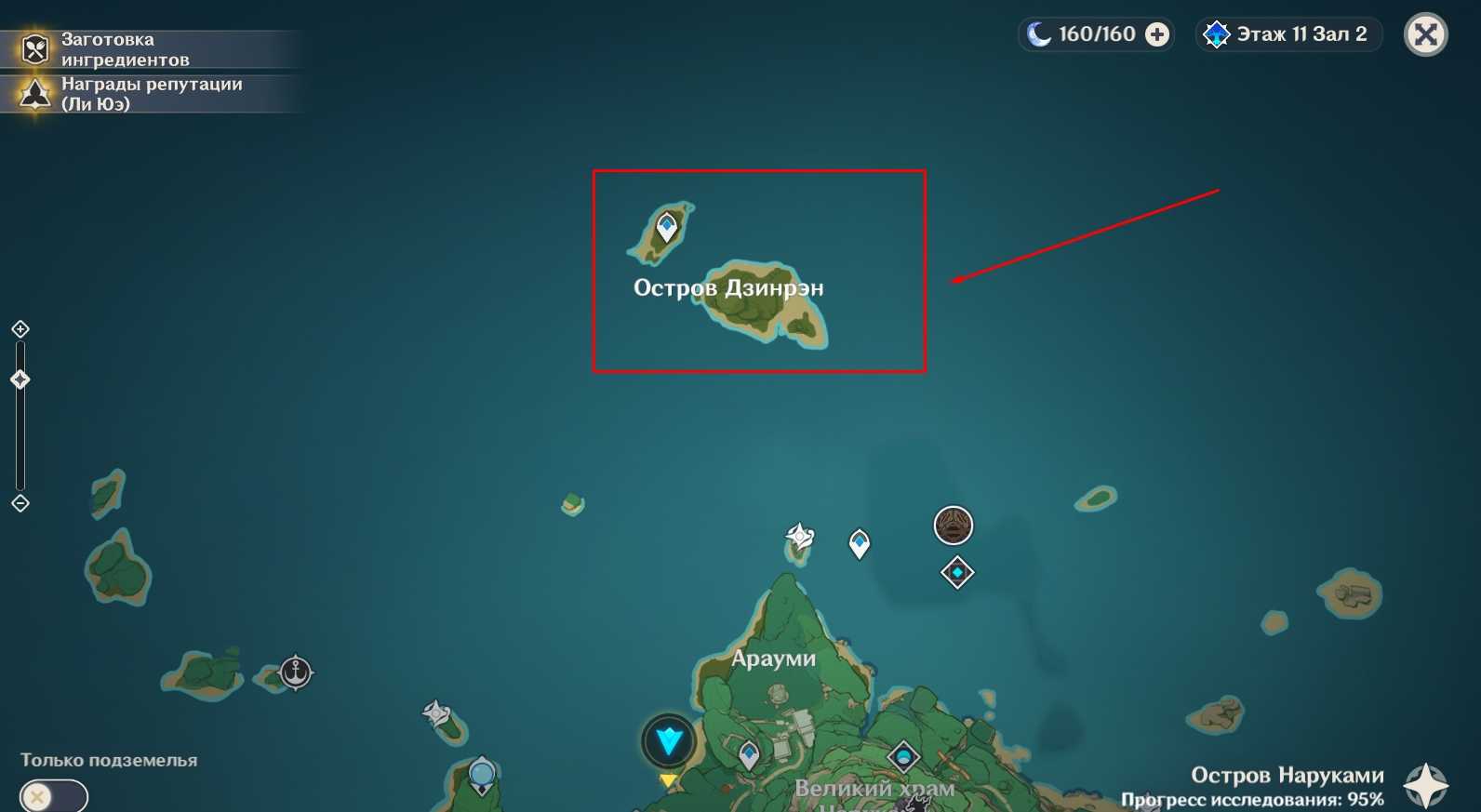 Чтобы получить задание «Сокровище фермера», отправляйтесь на остров Дзинрэн. Эта зона расположена на севере от Наруками (см. скриншот ниже).