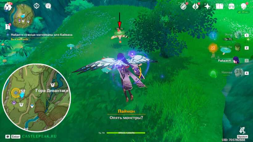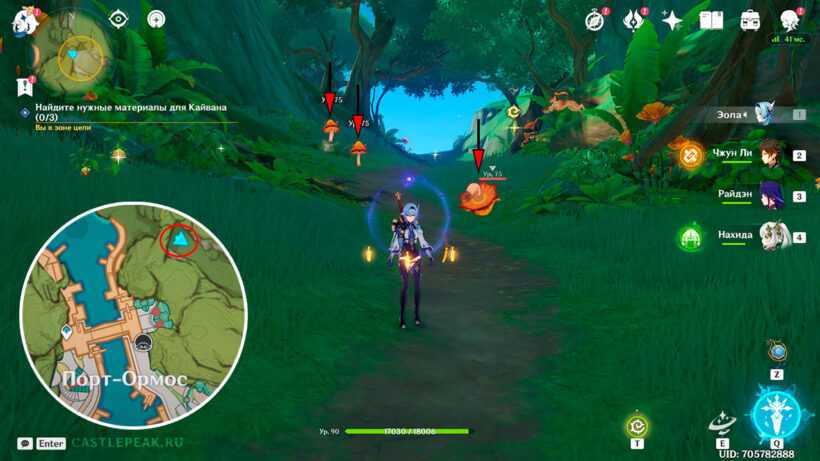 - Выполните квест «Сказания из Татары» и уберите барьер над этой зоной. После выпейте зелье на уменьшение урона от стихии Электро, сделайте много блюд на восстановление здоровья, телепортируйтесь на южную сторону Татарасуны и бегите к электрокулу. Спрыгните вниз с горы, используя планер, и резко развернитесь. Долетите до выступа, заберитесь по скале наверх и подберите предмет. Во время карабканья вам потребуется много выносливости, поэтому расходуйте ее экономно.