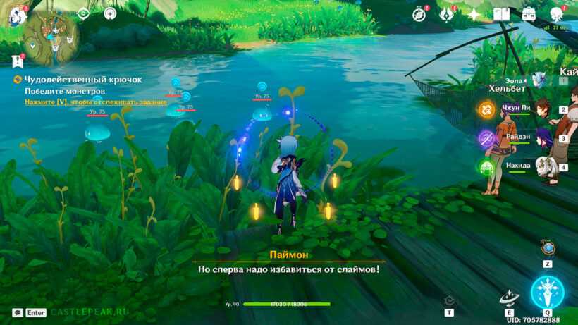 В процессе ловли внезапно появятся гидро слаймы, разберитесь с ними.