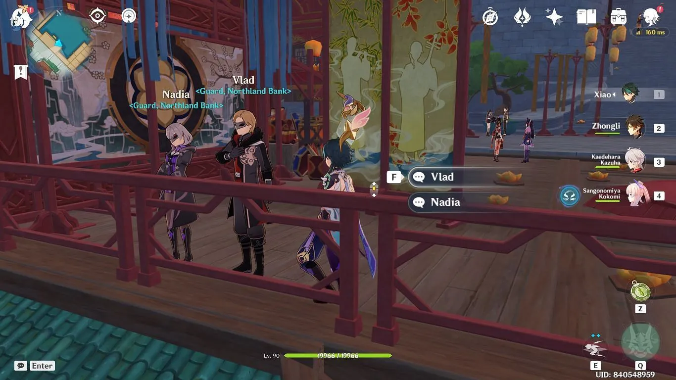 Влад и Надя — очень популярная пара NPC в сообществе Genshin Impact. В этом году они проводят время вместе перед фонарем Минсяо Морской наблюдатель в гавани Лиюэ, за экраном рядом с Юнджин и Синьян.