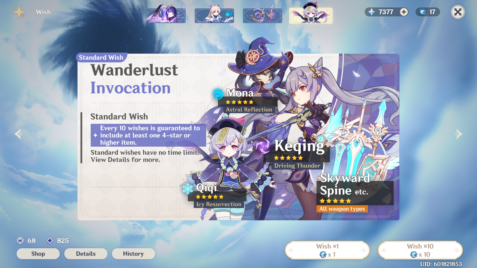 Существует постоянный «стандартный баннер», состоящий из персонажей и оружия, которые были доступны в начале игры и с тех пор не менялись.