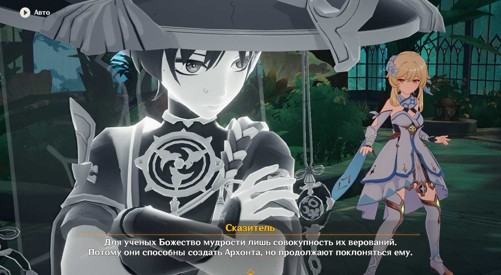 Нахида скажет, что жители на самом деле видят сны, однако Акаша отнимает их. После этого вы вновь перейдете в состояние размышлений. Вам нужно трактовать мысль «Она – воплощение силы божества мудрости» и подать в виде заключения.
