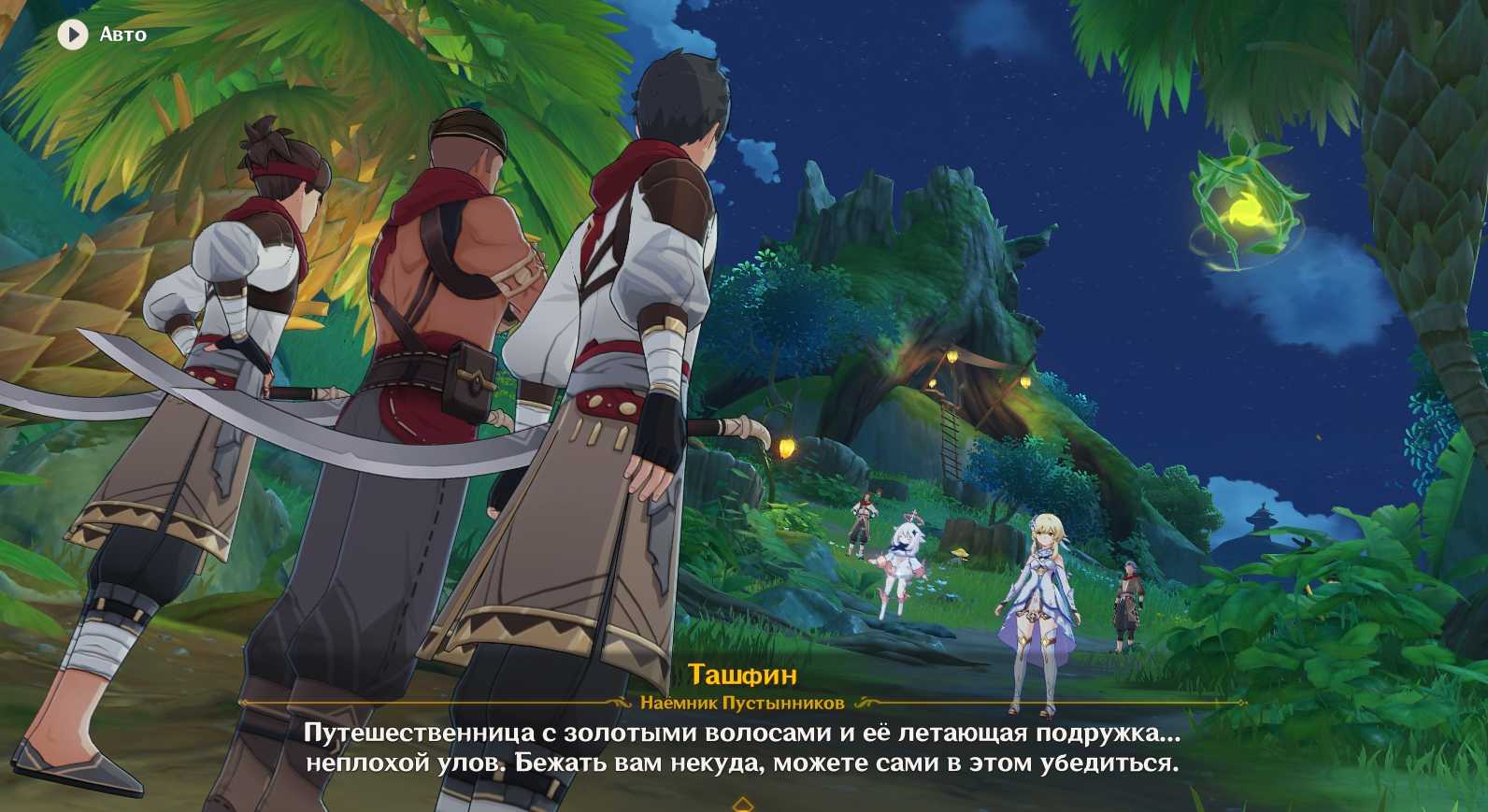 Отправляйтесь в Гандхарву и найдите Тигнари. На входе в поселение Путешественницу остановят Наемники Пустынников. Их послал Дотторе. Победите 3 волны монстров и продолжайте свой путь.