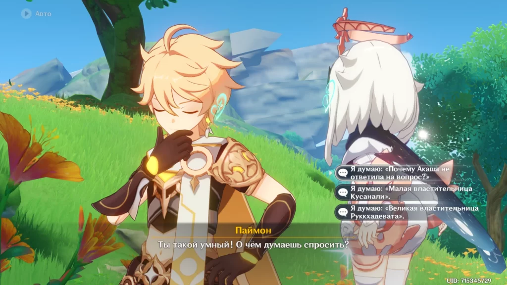 Нахида подтвердит, что вы находитесь во сне, а затем спросит, кем она является. Снова переходим к размышлениям. Трактуйте мысль «Луна» и сразу же подайте в виде заключения. Вы наверняка уже до этого догадались, что имеете дело с Дендро Архонтом Кусанали. Далее вы сможете задать ей несколько вопросов, чтобы получше узнать, что здесь происходит.