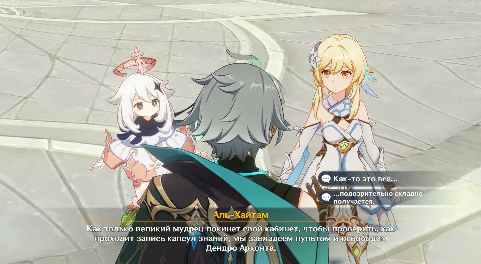 Промотайте время с помощью внутриигровых часов до 8 утра следующего дня. Далее идите к Академии и найдите Аль-Хайтама (используйте телепорт в столице Сумеру возле НПС, который выдает награды за репутацию в регионе). Встретившись с ним, узнайте о плане проникновения в кабинет великого мудреца Азара. Цель – украсть пульт, который поможет вызволить Нахиду из Храма Сурастаны.