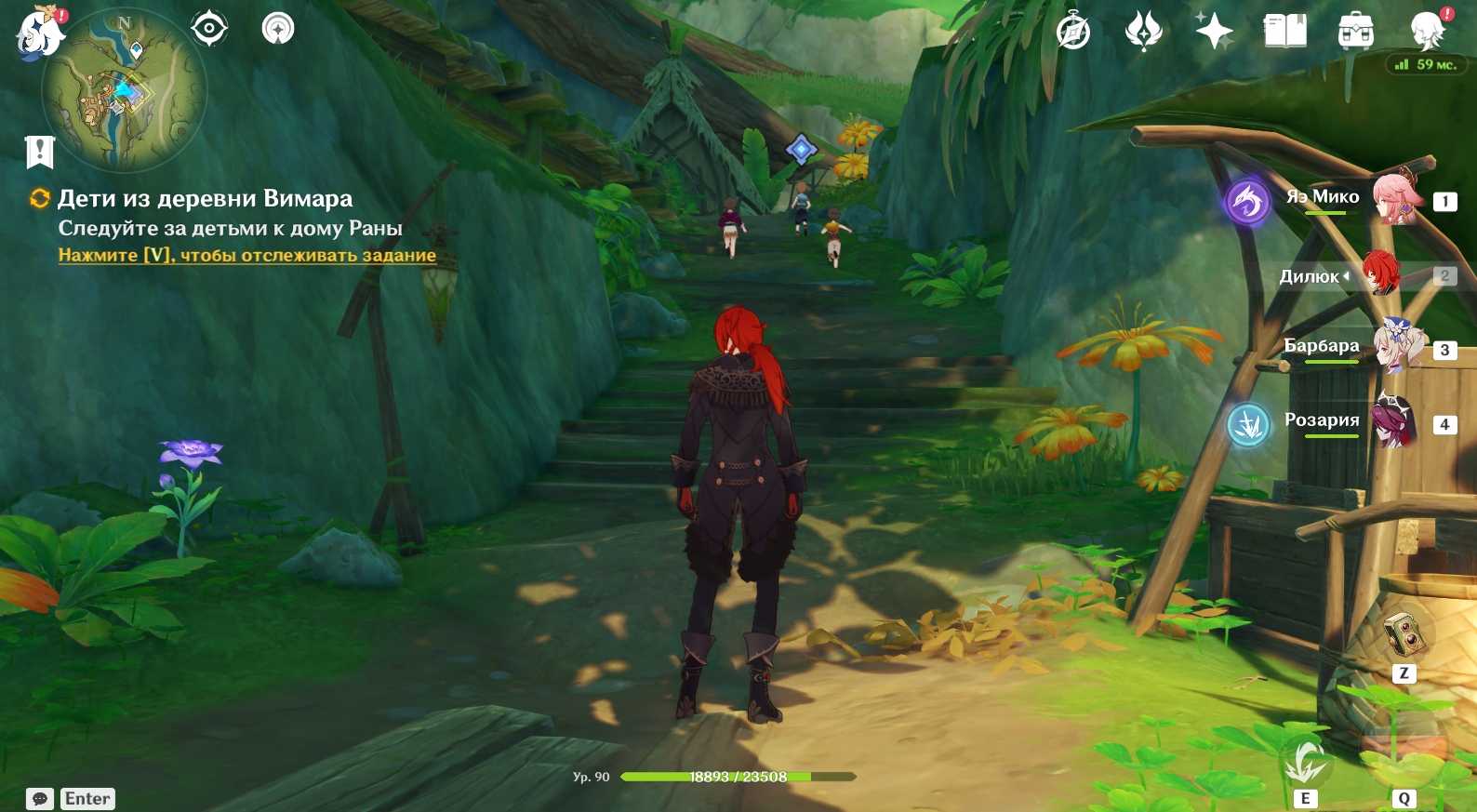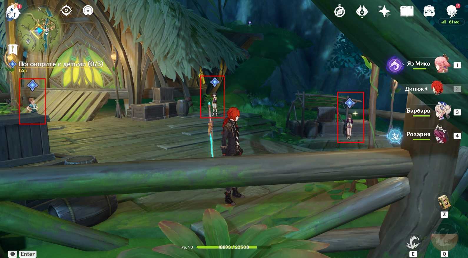 Поговорите с Альфонсо, на которого указывает квестовый маркер. Вам расскажут, что в последнее время дети из деревни начали пропадать. Но они возвращаются, хотя ничего не помнят о том, что с ними произошло. И еще поблизости появились Фатуи. Когда беседа закончится, бегите за детишками к дому Раны.