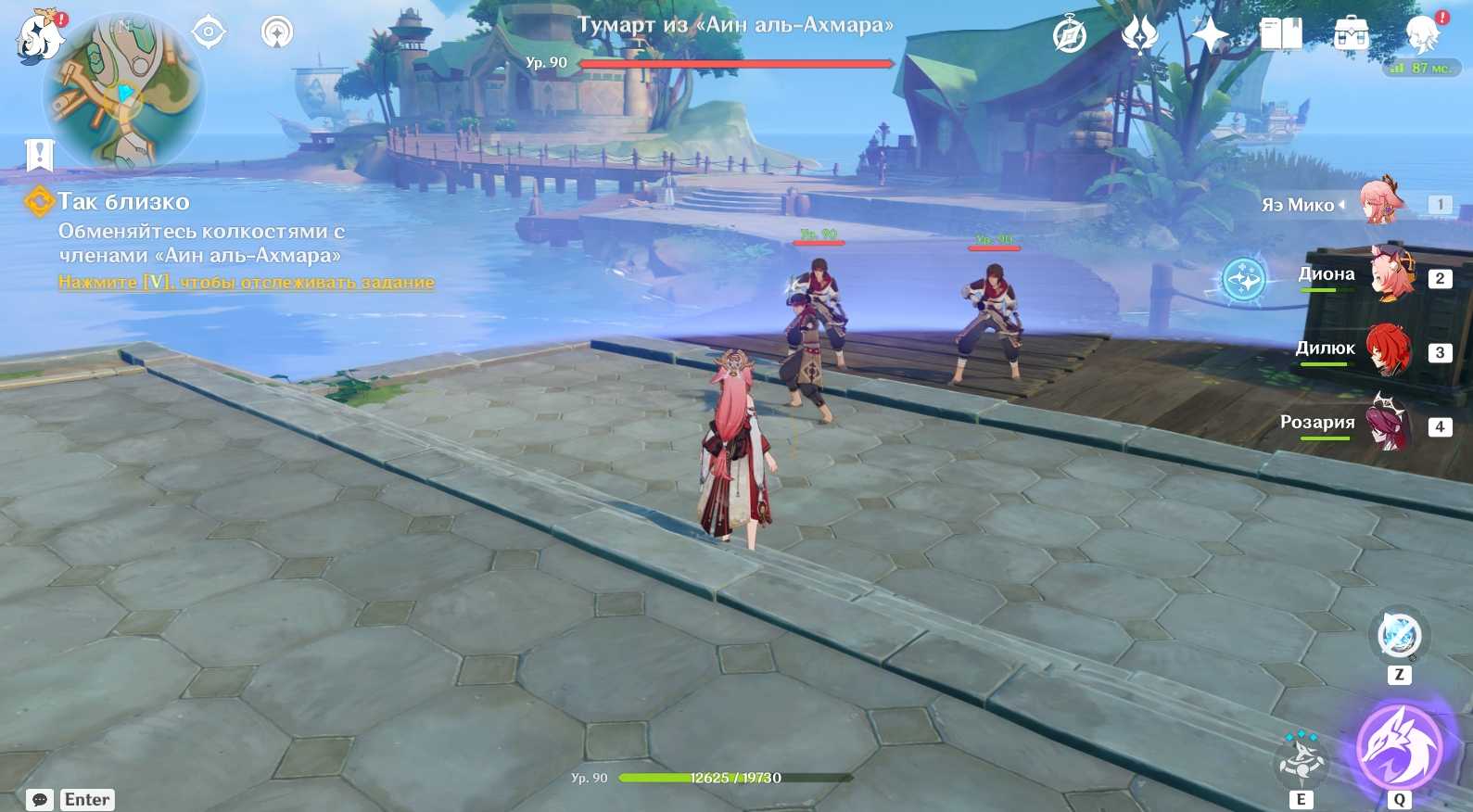 Все, что случилось в Порт-Ормос – это ловушка. Нам нужно срочно возвращаться в Пардис Дхяй, где осталась Хайпасия. Как только вы переместитесь в указанное место, увидите, что Тигнари пытается противостоять солдатам Фатуи. Нам нужно помочь ему – победить 3 волны монстров.