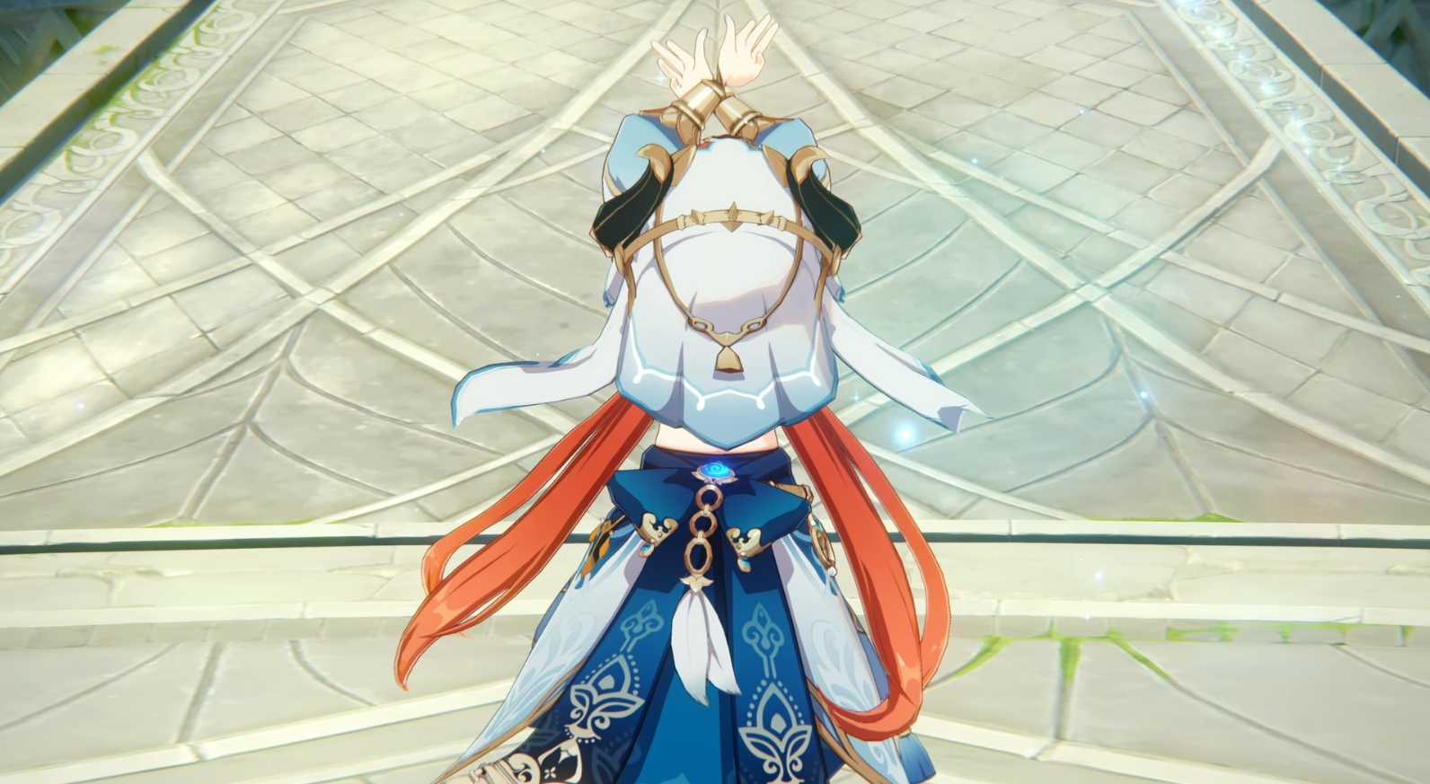 После беседы с Нахидой вы переместитесь в воспоминания. Вам нужно будет отправиться к воротам столицы и попробовать покинуть ее. Дойдя до маркера, посмотрите продолжительный ролик, в котором будет показано, что происходит с Путешественником, когда он пытается выйти из города.