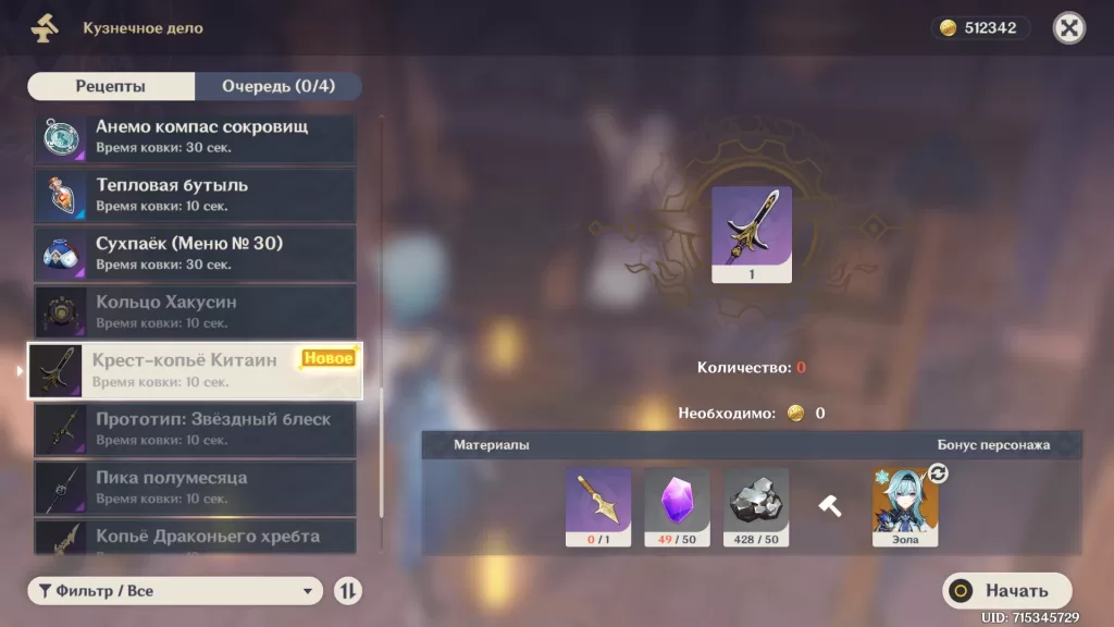 Выполнив мировой квест «Наследие Оробаси», вы получите 50 Камней Истока, диаграмму: Крест-копьё Китаин и достижение «Эхо ярости». Используйте диаграмму в инвентаре (раздел драгоценности), чтобы изготовить новое копьё Инадзумы у кузнеца.