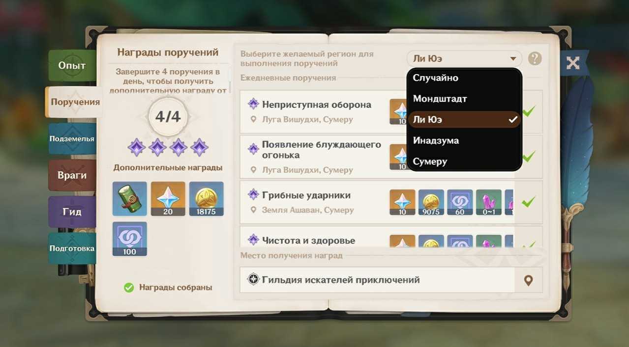Задания Инадзумы – в этом разделе вы найдете список всех квестов, за которые положены очки опыта репутации. Всего в регионе доступно 26 квестов, среди которых как простые задания, так и целые цепочки, например: