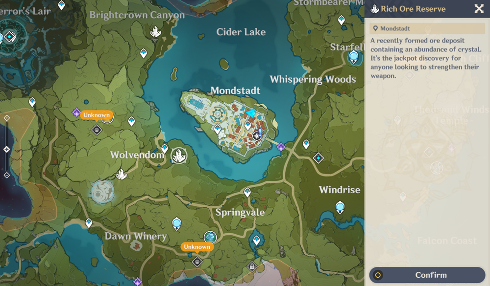 1. Вы получите доступ к поиску руды вокруг Мондштадта, когда ваша репутация в этом регионе достигнет уровня 2.2. Вы получите доступ к поиску руды вокруг Ли Юэ, когда ваша репутация в этом регионе достигнет уровня 2.