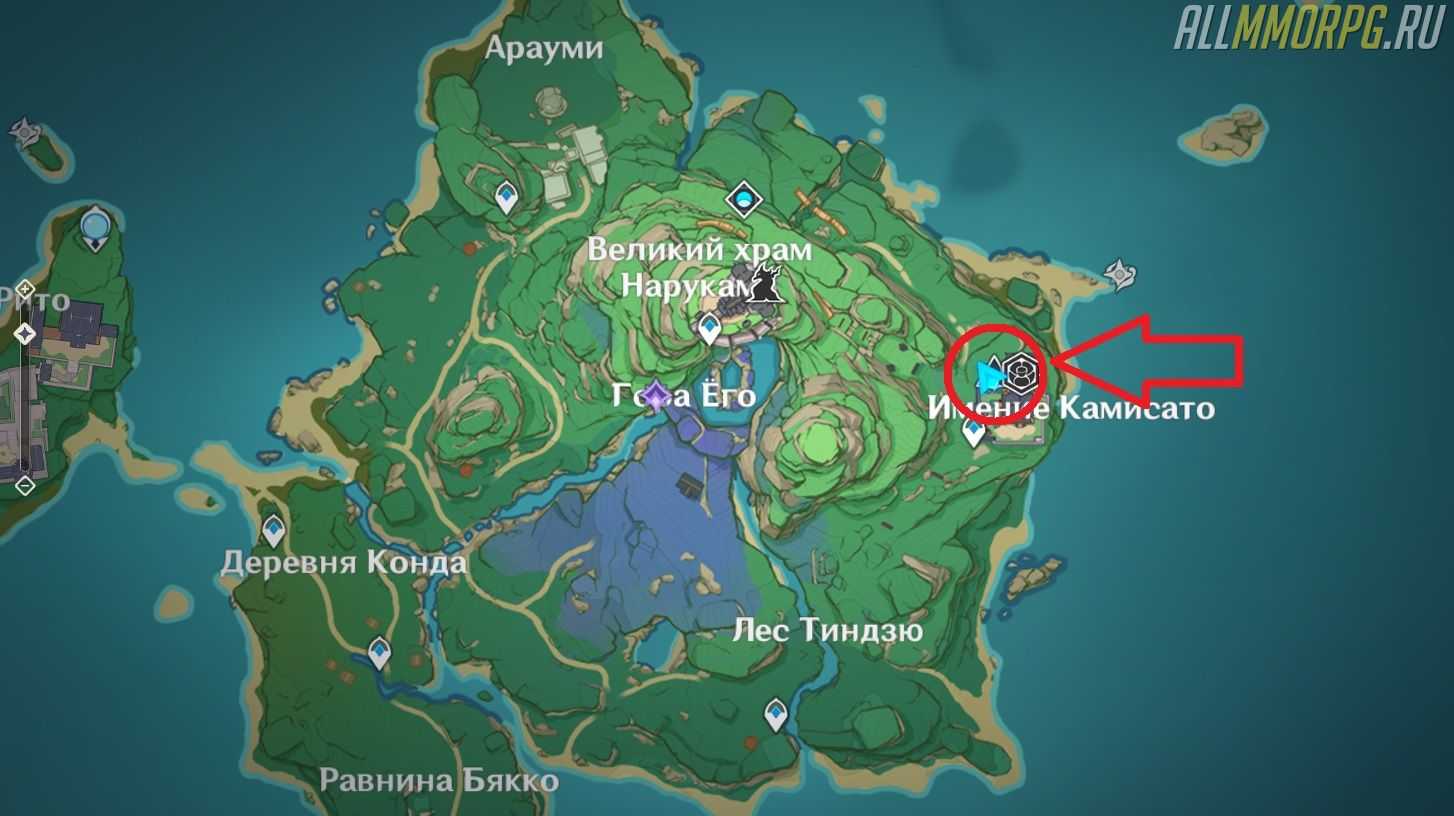 Если вы занимались прокачкой репутации в Ли Юэ и Мондштадте, то знаете, что представитель региона, у которого можно узнать свой прогресс, находится в столице. Однако в Инадзуме все несколько иначе. Представитель этого региона обитает на острове Наруками в имении Камисато. Зовут его Мадарамэ Хякубэй.