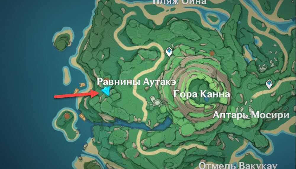 За следующей порцией грибов двигайтесь на юг острова. Начните с подножья горы Канна и ее верхних склонов — там вы найдете немало грибочков. После двигайтесь по направлению к отмели Вакуаку, сворачивая немного западнее. На равнинах Аутакэ светящийся гриб не растет, видимо ему не нравится чрезвычайно густой туман. Но к северу от горы Канна и к востоку от равнин все же есть парочка мест с грибами.