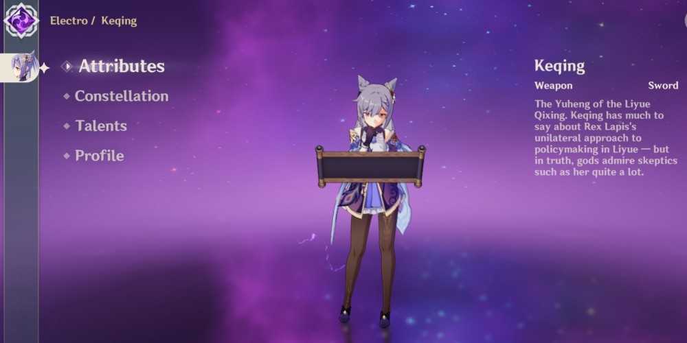 Страница атрибутов Keqing