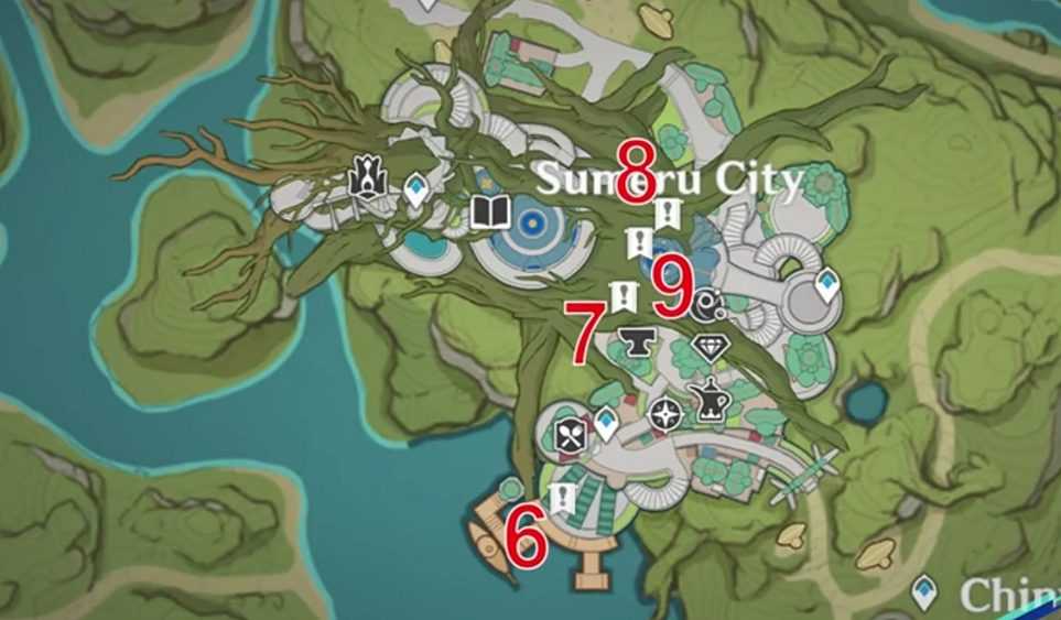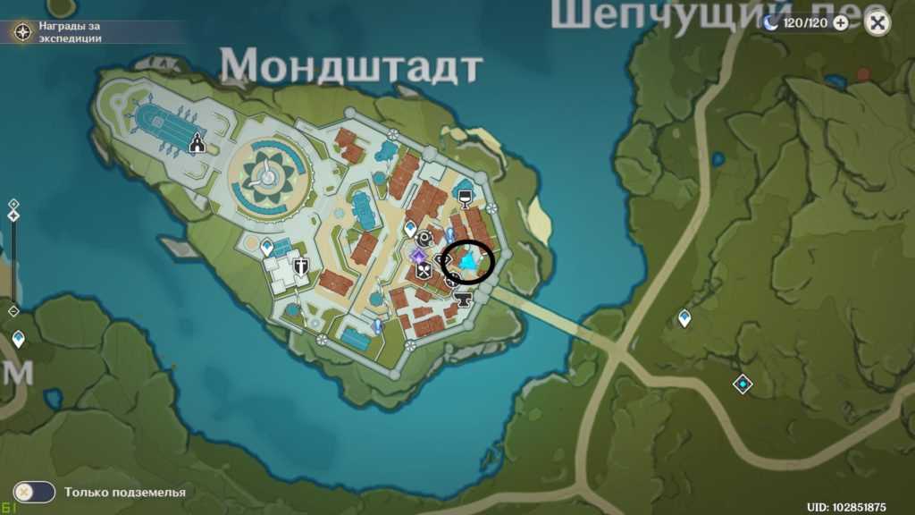 - Точки телепортации и статуи семи архонтов;