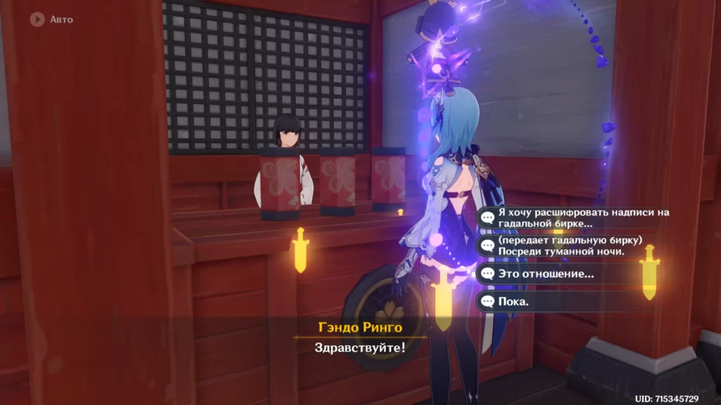 Жрица выдаст нам странную гадальную бирку с указанием места. В первый день это пещера под дворцом Инадзумы. Идем туда и убиваем агентов фатуи.