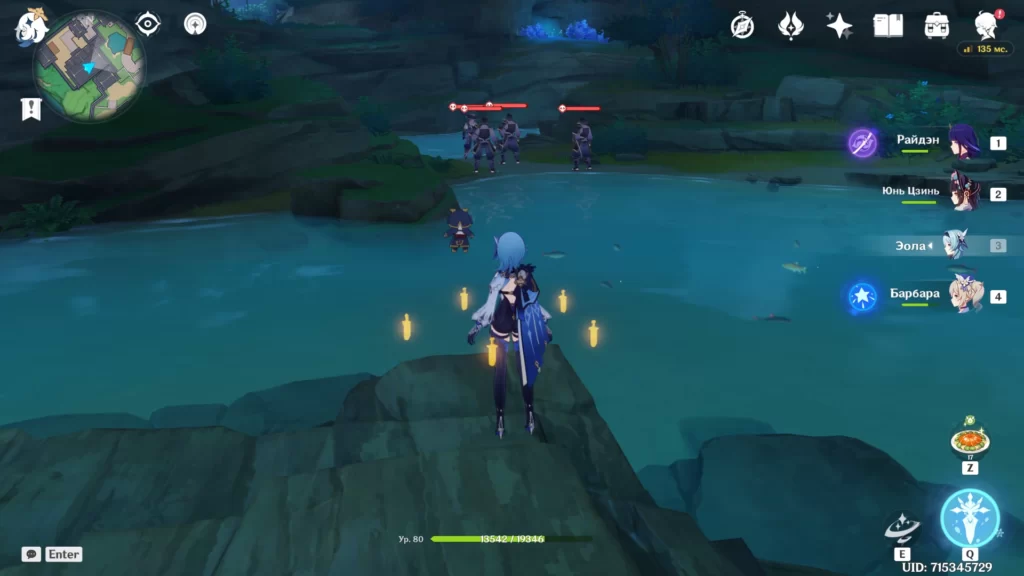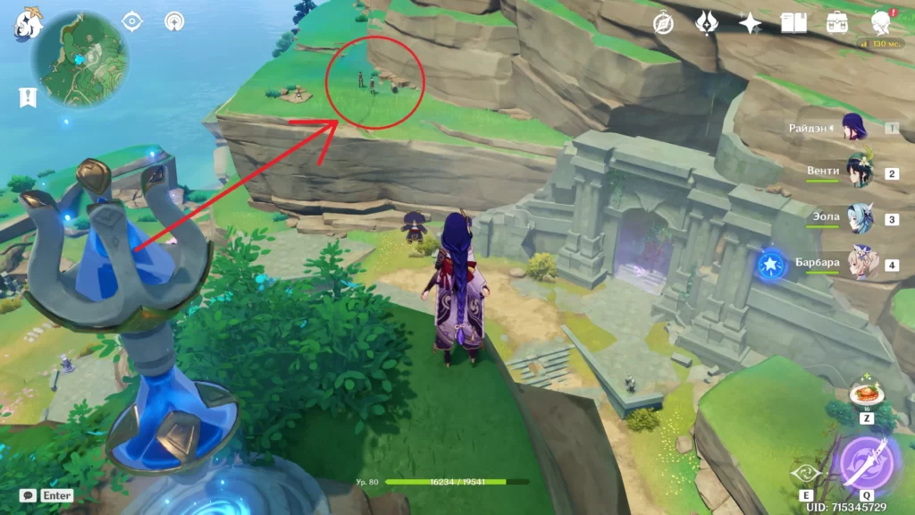 Самое первое, что нужно сделать, отправиться на утес Арауми. На западе нужно найти группу Фатуи (появились в обновлении). Ориентир: левее стража руин за барьером.