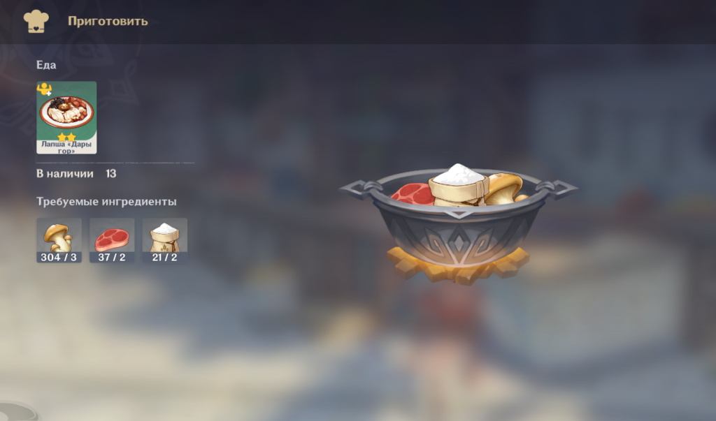Истощение выносливости во время восхождения на гору или планирования над морем – один из верных способов потерять персонажа и потратить впустую немного еды для его оживления. Вот почему надо иметь с собой такую экстренную еду (помимо Паймон ), Лапша “Дары гор” – это настоящая находка.