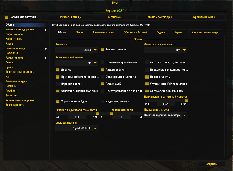 Основные настройки ElvUI