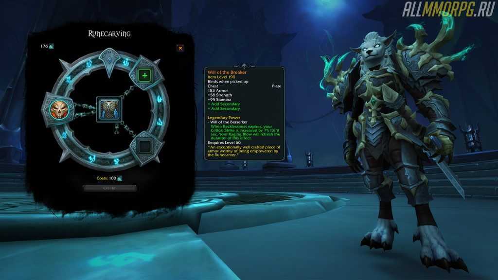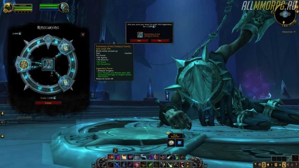 - Нужный легендарный эффект. Чтобы научиться наделять предметы определенными легендрными эффектами, требуется добыть рецепт (воспоминание).