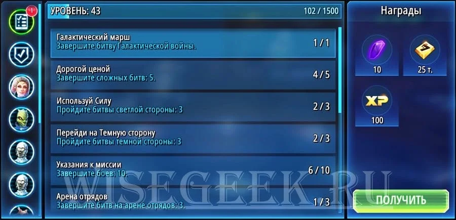 - Получать достижения можно, участвуя в избранных битвах светлой и темной стороны, выполняя ежедневные задания и иными способами.