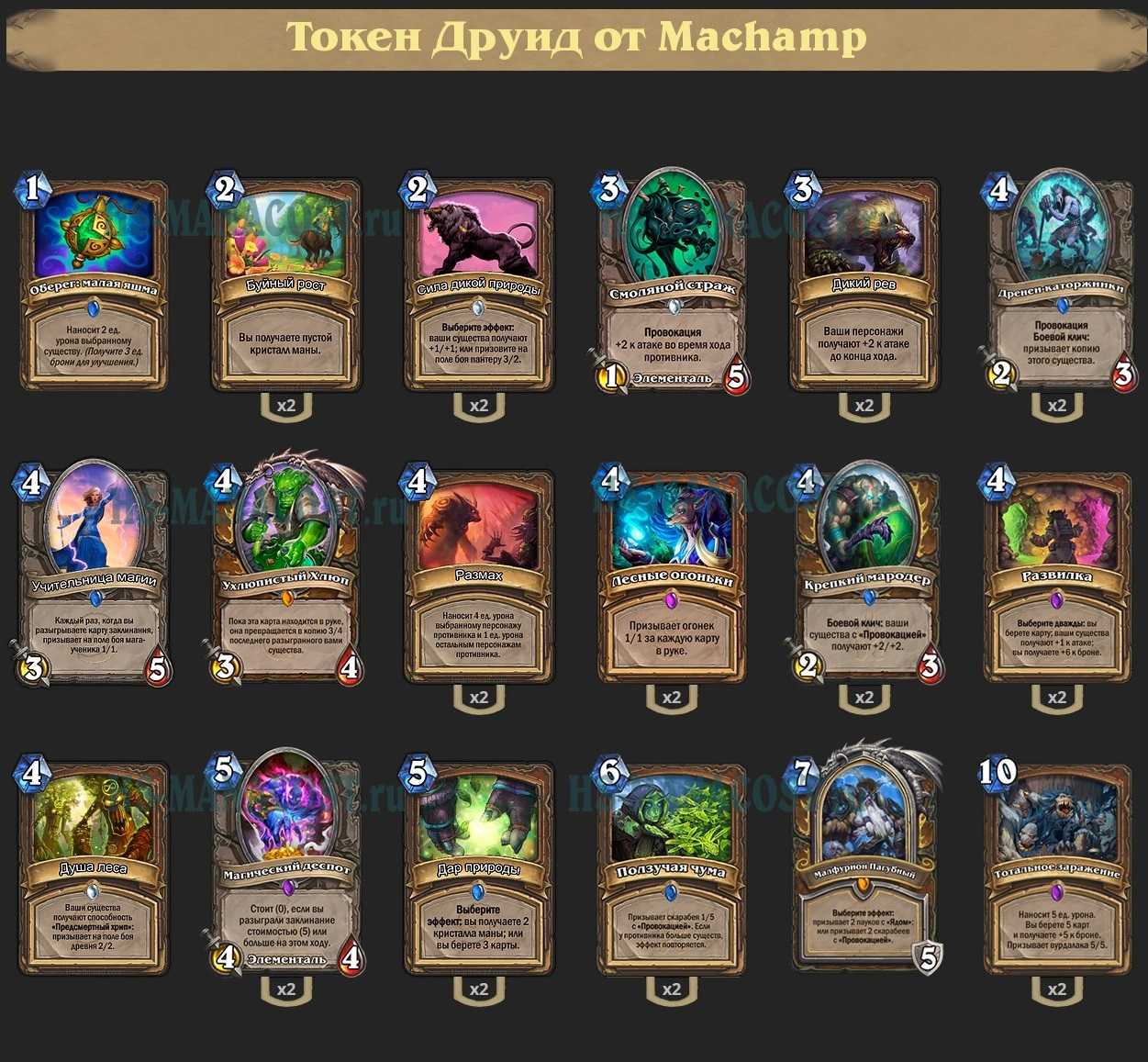 Колода от Machamp представляет собой смесь первого и второго варианта, она является более бюджетной и вы нередко можете встретить на полях сражения такого Токен Друида. Данная колода также рассчитана на синергии провокаций с другими эпическими и легендарными картами.