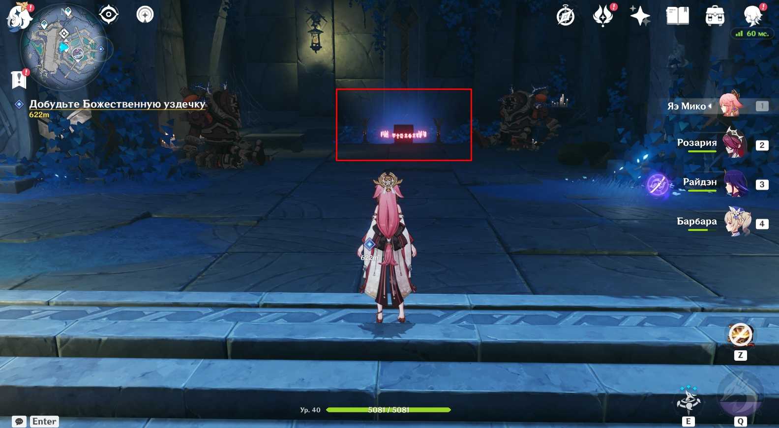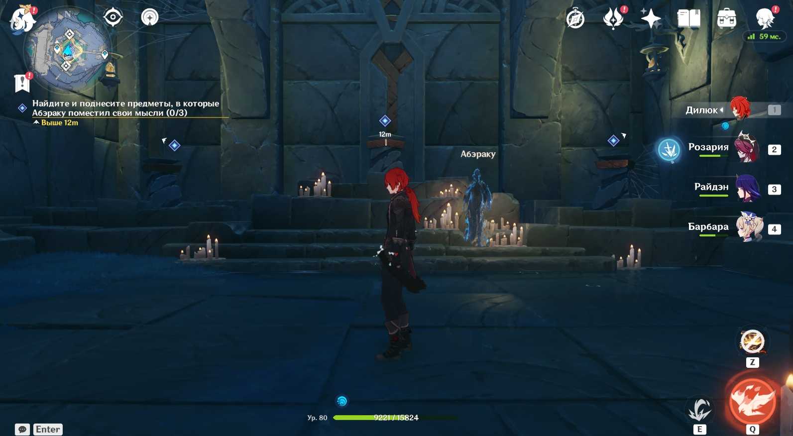 Суть испытания – убить трех Магов Бездны (Пиро, Крио и Электро) за 1 минуту. Справившись, заберите награду из сундука, который появится в центре площадки, и поговорите с Абэраку еще раз.