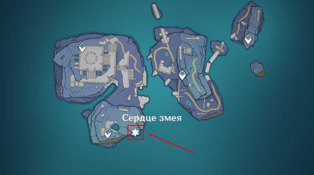 Отправляйтесь на Сердце змея в место, отмеченное на скриншоте выше. Там вы найдете 5 огромных камней с символами. В каждый символ нужно вставить соответствующий Знак-ключ. После этого в центре появится призрак Абэраку. Поговорите с ним, чтобы запустить испытание.