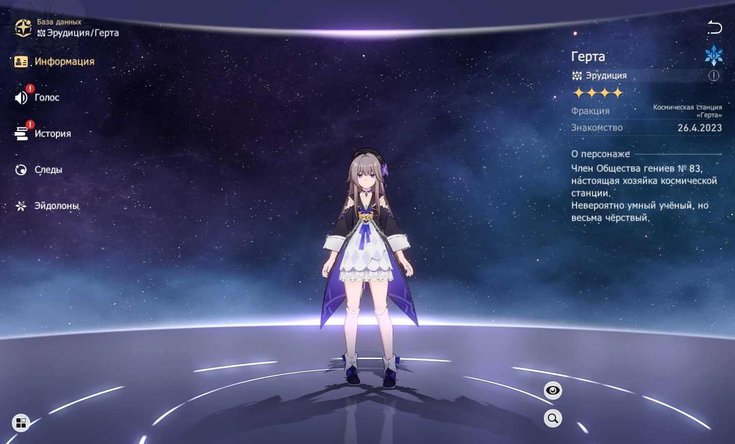 Также в Виртуальной вселенной можно получить три эйдолона для Герты (за первое прохождение миров 2, 4 и 6). Подобно Сервал, Герта наносит АоЕ-урон, но, к сожалению, уступает ей по эффективности. Ее можно использовать для фарма, но на освоении она откровенно слаба (особенно в боях с боссами).