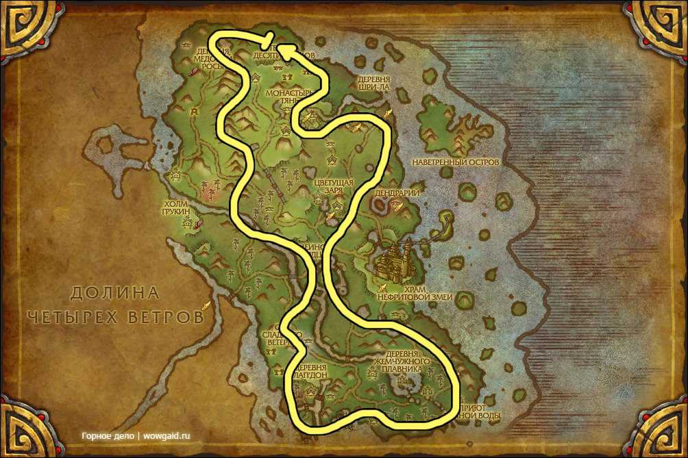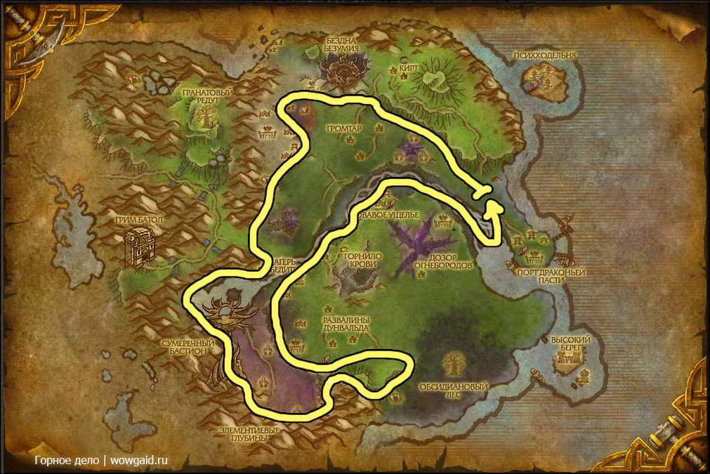 В нашем гайде представлены маршруты прокачки Горного дела только для локаций Катаклизма. Мы считаем, что нет необходимости рисовать карты для всех локаций. Вам лишь стоит знать несколько положений о расположении месторождений руды, чтобы удачно ориентироваться и выбирать лучший маршрут в любой локации.