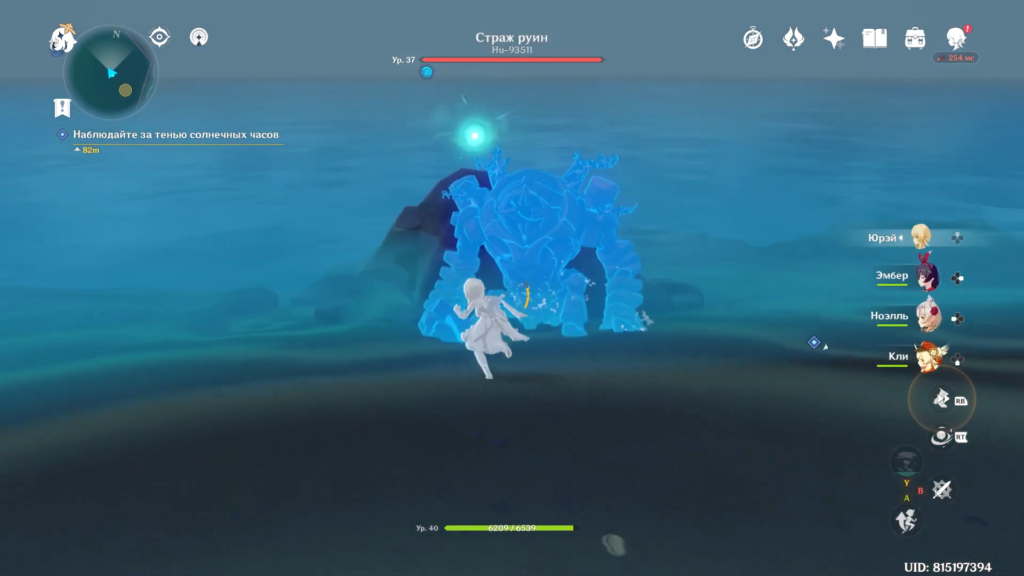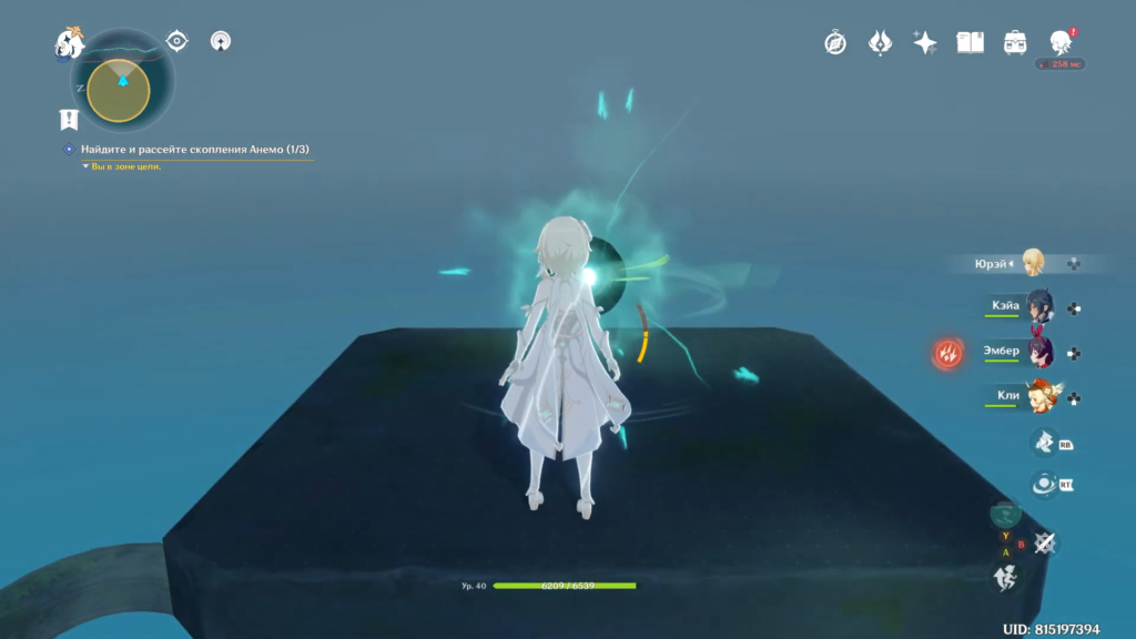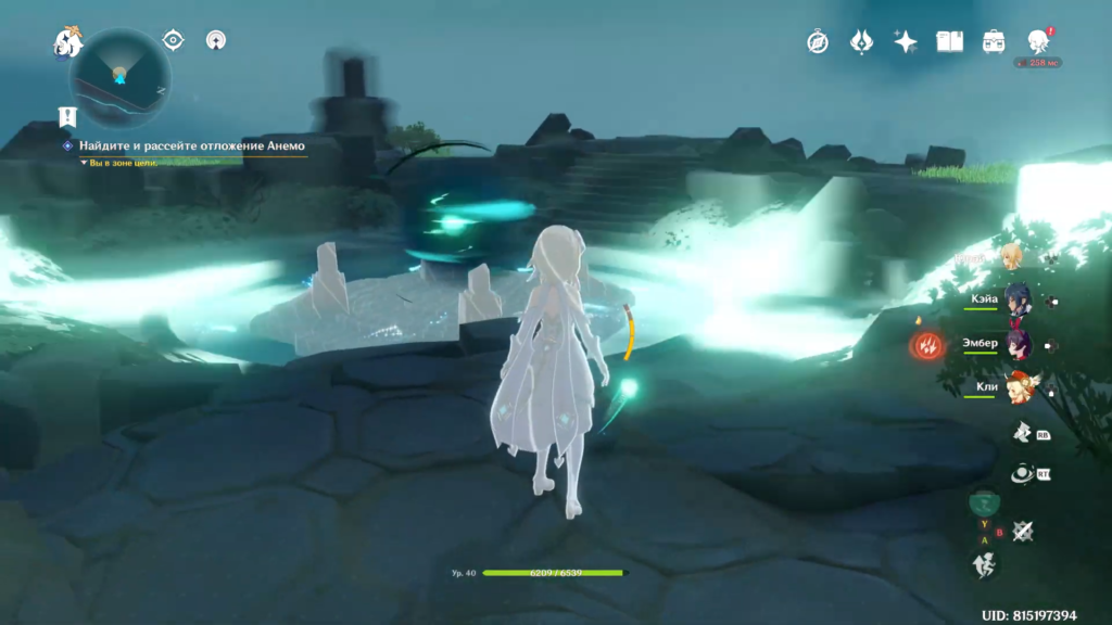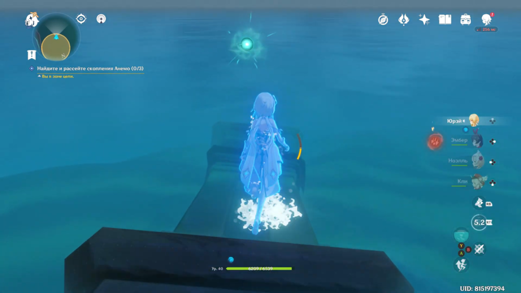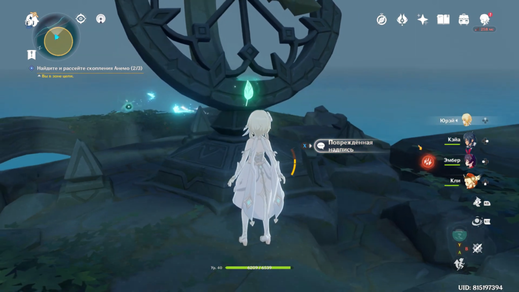 - Последнее скопление Анемо находится на самом верху колонны, справа от часов. Чтобы подняться туда вам придется сгенерировать восходящий поток ветра при помощи скила или собрав анемо частички, находящиеся на острове.