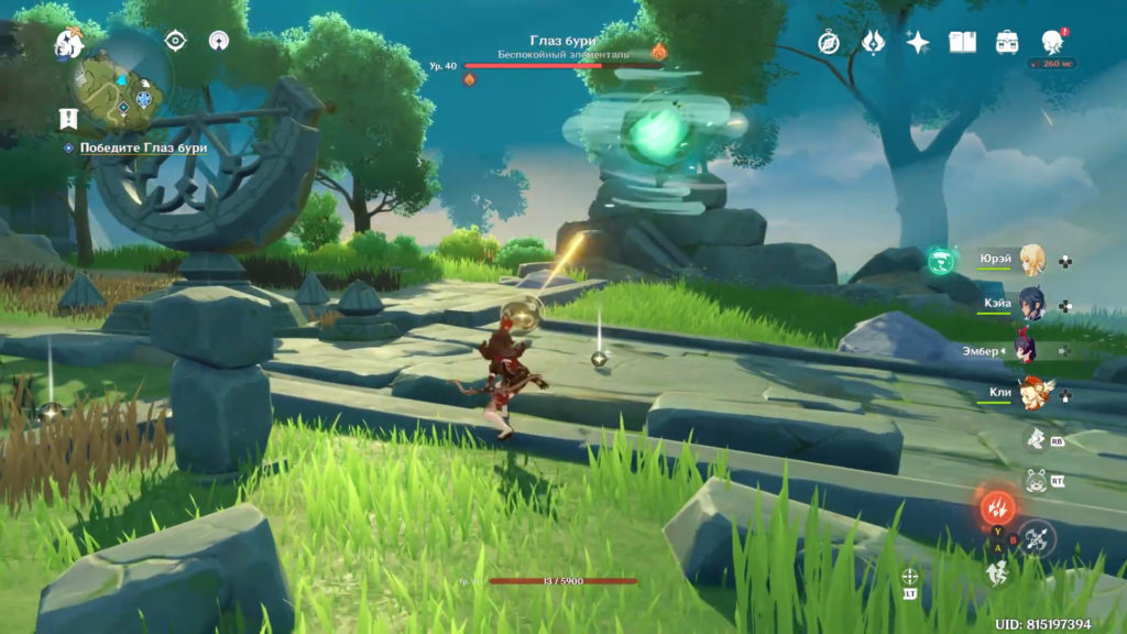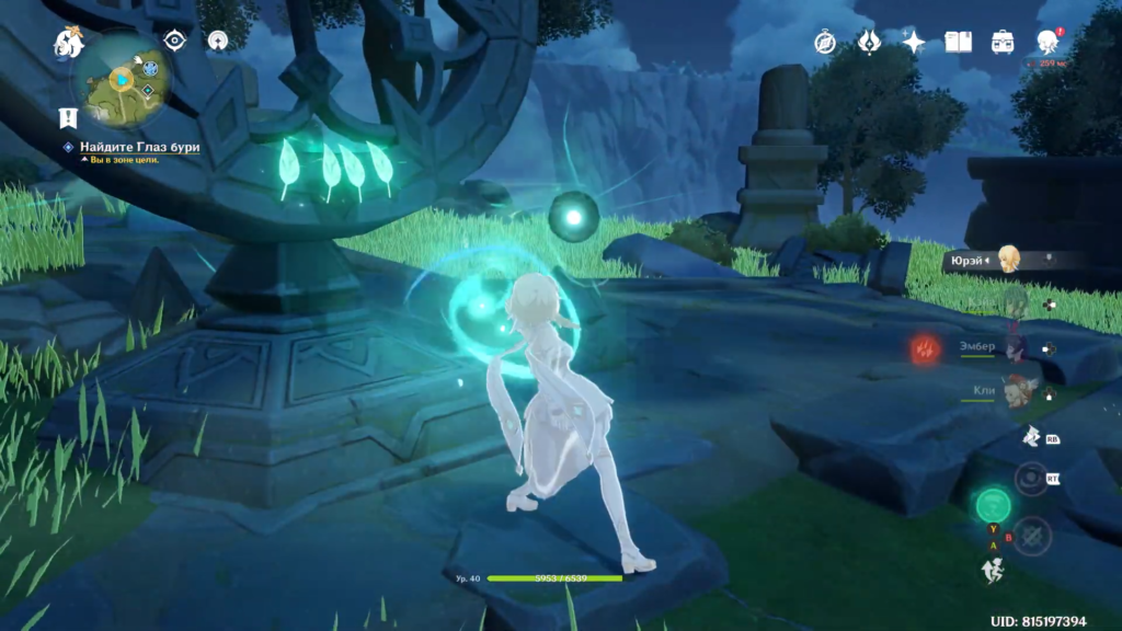 - После того как вы собрали все скопления Анемо, в центре острова появится Глаз бури. Чтобы его увидеть, надо будет использовать навык видения.