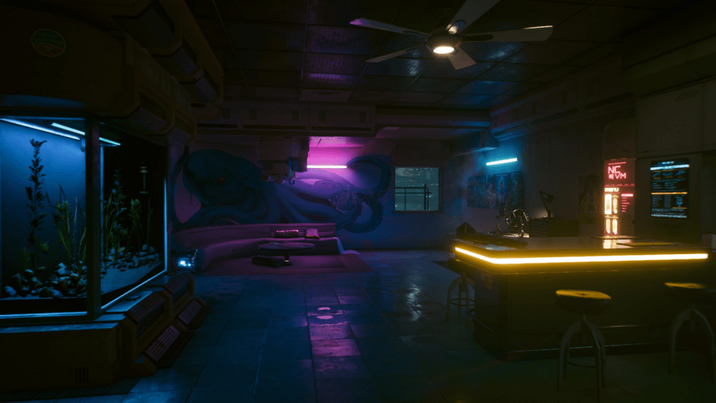 Как только Ви действительно начнет попадать в высшую лигу, лучшим обновлением, без сомнения, станет роскошная квартира в Корпо Плаза. Это место настолько причудливое, что когда игроки входят в здание, они проходят проверку безопасности мимо администратора. Он излучает угрожающую атмосферу Арасаки и Конпеки Плазы и является лучшим, что любой игрок на жизненном пути Корпо может мечтать найти в игре.