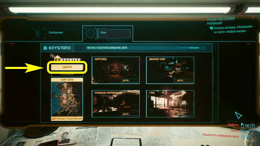 Официально квартира не является личной недвижимостью главного героя. Согласно сюжету Cyberpunk 2077, Ви снимает ее за определенную сумму. Доступ к аренде жилья открывается спустя 6 месяцев игрового времени после пролога.