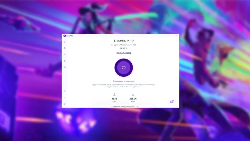 В ходе написания статьи, мы проверили более 10 VPN сервисов и 150 стран, что заняло у нас около 4 часов. Однако первым, что у нас получилось, это использовать для смены региона платную версию PureVPN выбирая при этом страну Индия.