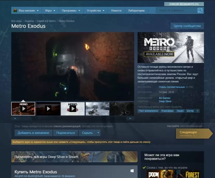 Steam — пионер в области цифрой дистрибуции компьютерных игр. Это очень большой и старый магазин с самой обширной библиотекой видеоигр на сегодняшний день. Есть в этом и недостаток: потеряться в каталоге проще простого. Этому же способствует и наличие халтурных поделок в одном ряду с AAA-тайтлами и качественными инди.