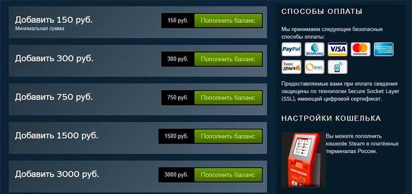 Основные способы пополнения кошелька Steam
