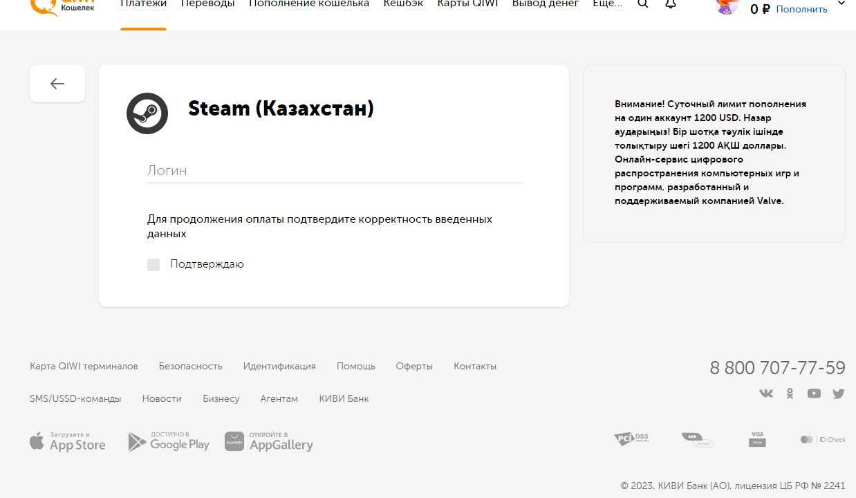 Как пополнить Steam с помощью счета QIWI в тенге (Казахстан)