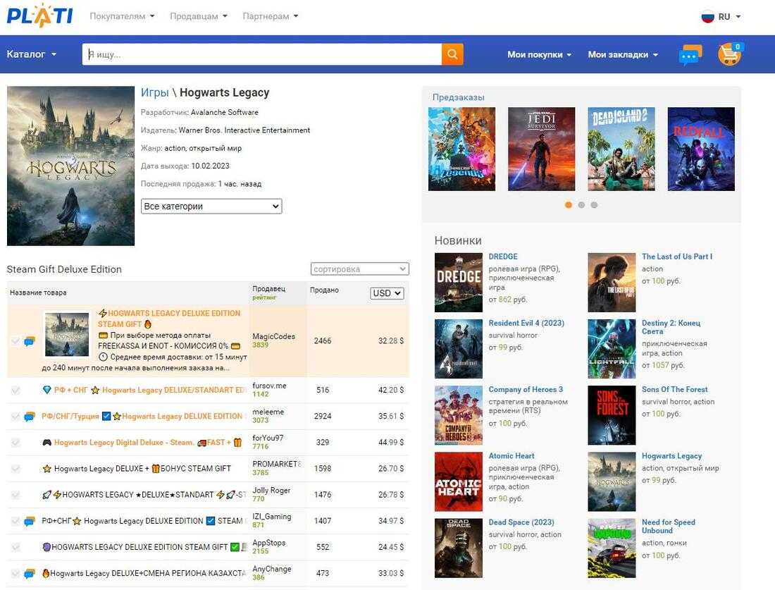 Крупный сервис по продаже цифровых продуктов различных сервисов, включая Origin, Rockstar Social Club, EGS и Ubisoft. На некоторые позиции установлена цена в 1,5-2 раза дешевле, чем в Стиме. При оплате картой Visa/Mastercard взимается комиссия.