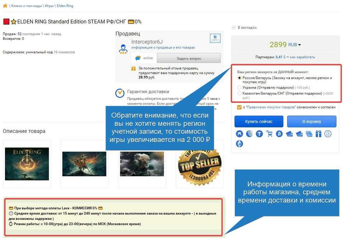 Примечание: обращайте внимание, что за товар выставил продавец. Это может быть чужой аккаунт с игрой (вы арендуете учетную запись), код активации или товар, которую продавец высылает в виде подарка