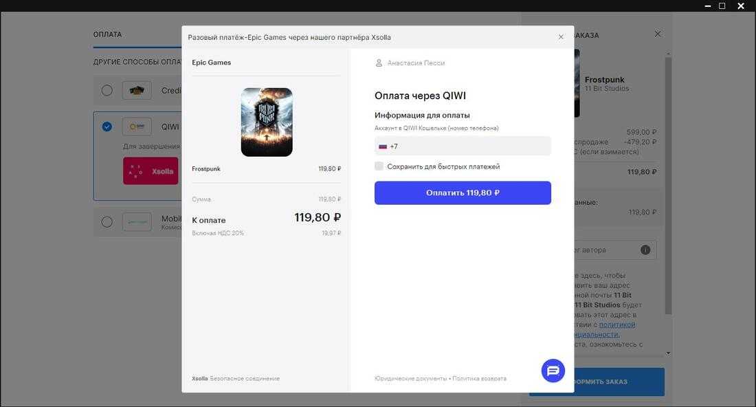 Если вы не хотите пользоваться услугами посредников и обращаться к сторонним платформам, рекомендуем обратить внимание на магазин от Epic Games. В 2023 году администрация цифрового магазина подписала договор с Xsolla, благодаря которому пользователи из России могут оплачивать покупки через QIWI-кошелек