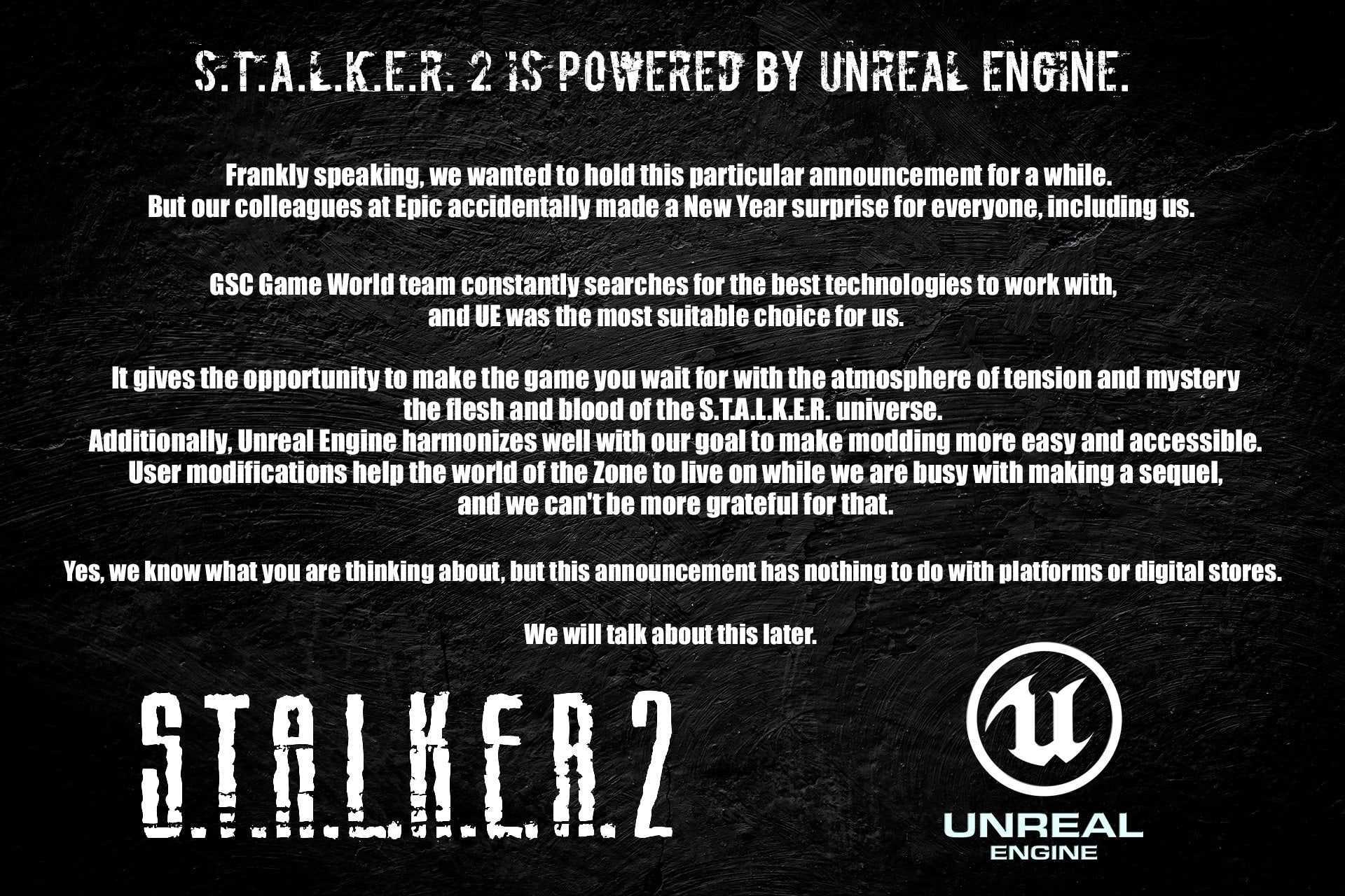 Компания GSC Game World официально подтвердила, что S.T.A.L.K.E.R. 2 разрабатывается на Unreal Engine 4!