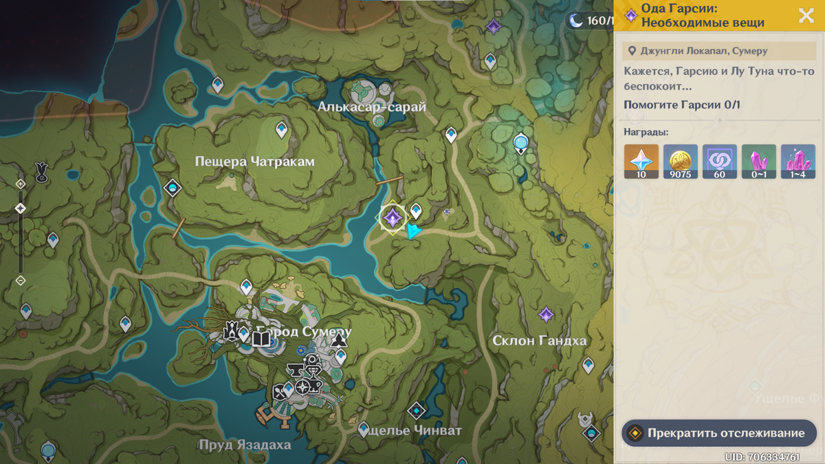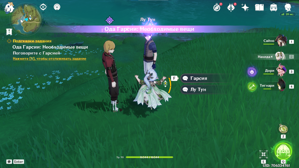 Гарсия и Лу Тун стоят недалеко от города Сумеру и обсуждают поиск слаймов. Гарсия, конечно же рад нас видеть, ему нужна слаймовая слизь в качестве смазки для Числовой машины.